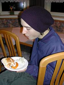 Hami Petz beim Jausnen - generalmäßig - extra mit Haube! |