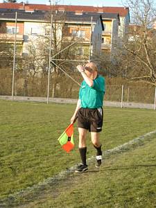 Obmann Manfred "Mandi" ist heute Mitglied des Schiedsrichtertrios. Er fungiert als Schiedsrichterassistent bzw. auf Normaldeutsch Linienrichter oder "Wachler". |
