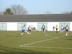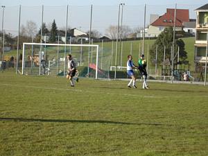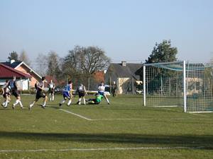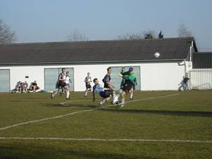 Steggi Tom steht nach Pass von Michi allein vorm Tor - doch der Winkel wird so schräg, dass er Millimeter am langen Eck vorbeischießt. |