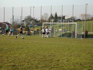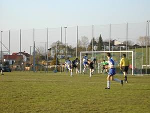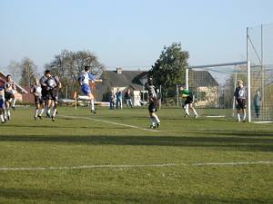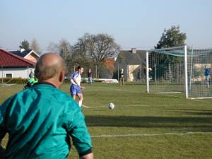 Michi schießt aus der Distanz - der Ball streift das Außennetz. |