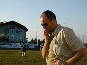 Trainer Leopold "Poidi" Hametner beobachtet skeptisch den Spielverlauf. |