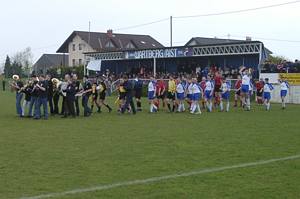 Im Takt der Musikkapelle marschieren die Mannschaften und das Schiedsrichterteam ins Stadion ein. |