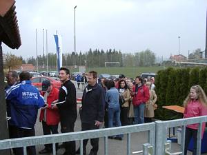 Kurz vor Spielbeginn ein einzigartiges Bild: Megastau an der Hauptkasse des Aiststadions. Hunderte von Fans wollen rechtzeitig hinein! |