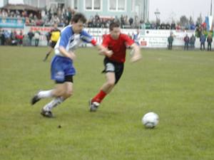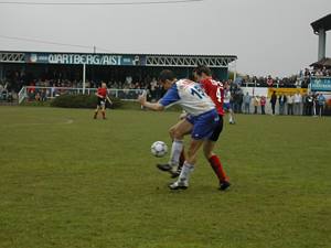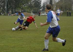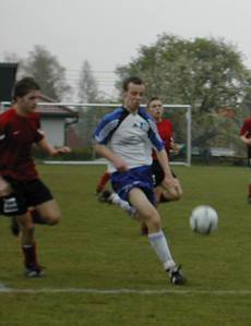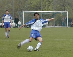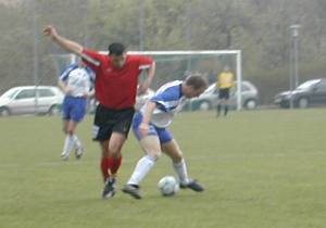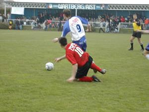 Michael "Michi" Mayrhofer stürmt auf der rechten Seite nach vorne. Eine solche Aktion führte zur besten Wartberger Chance. Eine Flanke von Michi übernahm Stürmer Thomas "Steggi" Stegfellner volley und der setzte das Leder nur knapp über die Querlatte. |