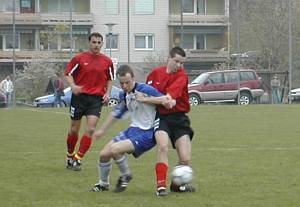 Dietmar "Didi" Frauenhuber tankt sich durch - in der ersten Hälfte taucht Didi zwei Mal vor Torhüter Berndl gefährlich auf, doch der kann mit Glanztaten klären. |