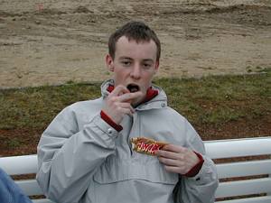 Offensivkraft Didi Frauenhuber erwischte nicht seinen besten Tag. Ihm, sowie der gesamten Mannschaft gelang in der ersten Halbzeit nur wenig. So nahm er dann in Hälfte 2 Platz auf der Bank - wohlgemerkt mit einem "Rider-Twix-Schokoriegel" - und widmete sich seinem anderen Hobby Süßigkeiten zu verzerren. |