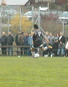 Libero Klausi setzt zum letzten Freistoß an. Dann war Schluss und die wichtigen drei Punkte im Sack. |
