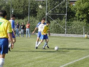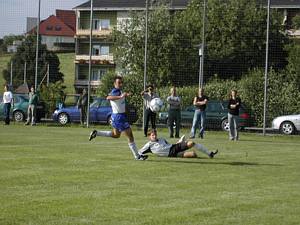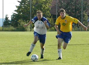 Thomas Seiberl im Duell mit Roland Traxler, dem Torschützen. |