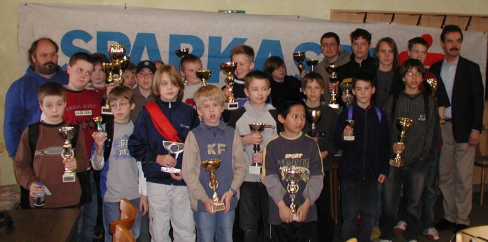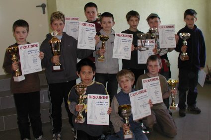 23.April 2005 Mühlviertler Masters in Wartberg / Aist. 26 vorqualifizierte Jugendspieler traten zum letzten Mal in dieser Saison 04/05 im Kreis Nord gegeneinander an. Kulinarisch verwöhnte uns die Küche Doppelhammer mit einem Schnitzel von der Pute und wir als Veranstalter konnten wieder jeden Teilnehmer einen schönen Pokal und Urkunden überreichen. So gab es trotz eines für das Schachspiel fast zu schönen Frühlingstages nur Sieger und zufriedene Gesichter. |